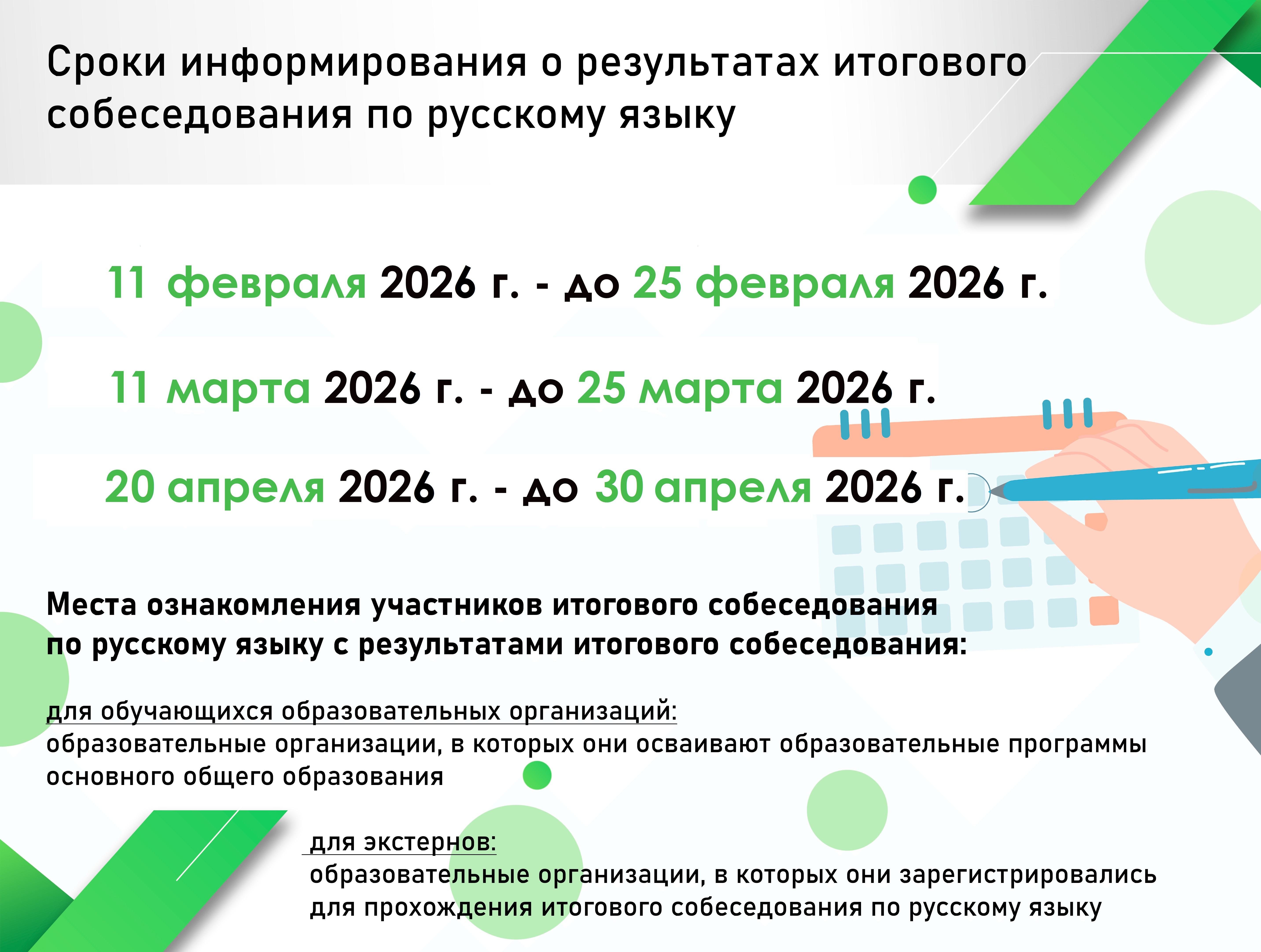 Сроки проведения итогового собеседования по русскому языку