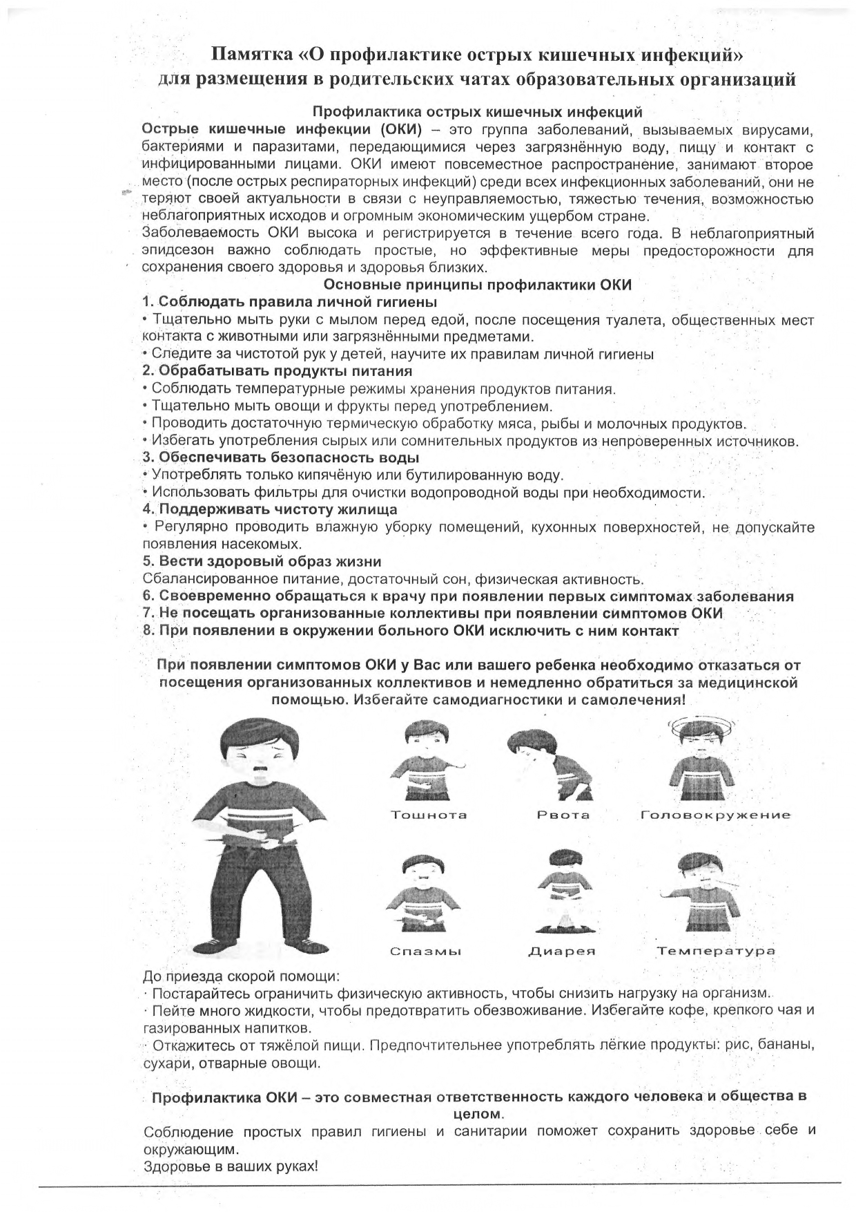 Памятка "О профилактике острых кишечных инфекций"
