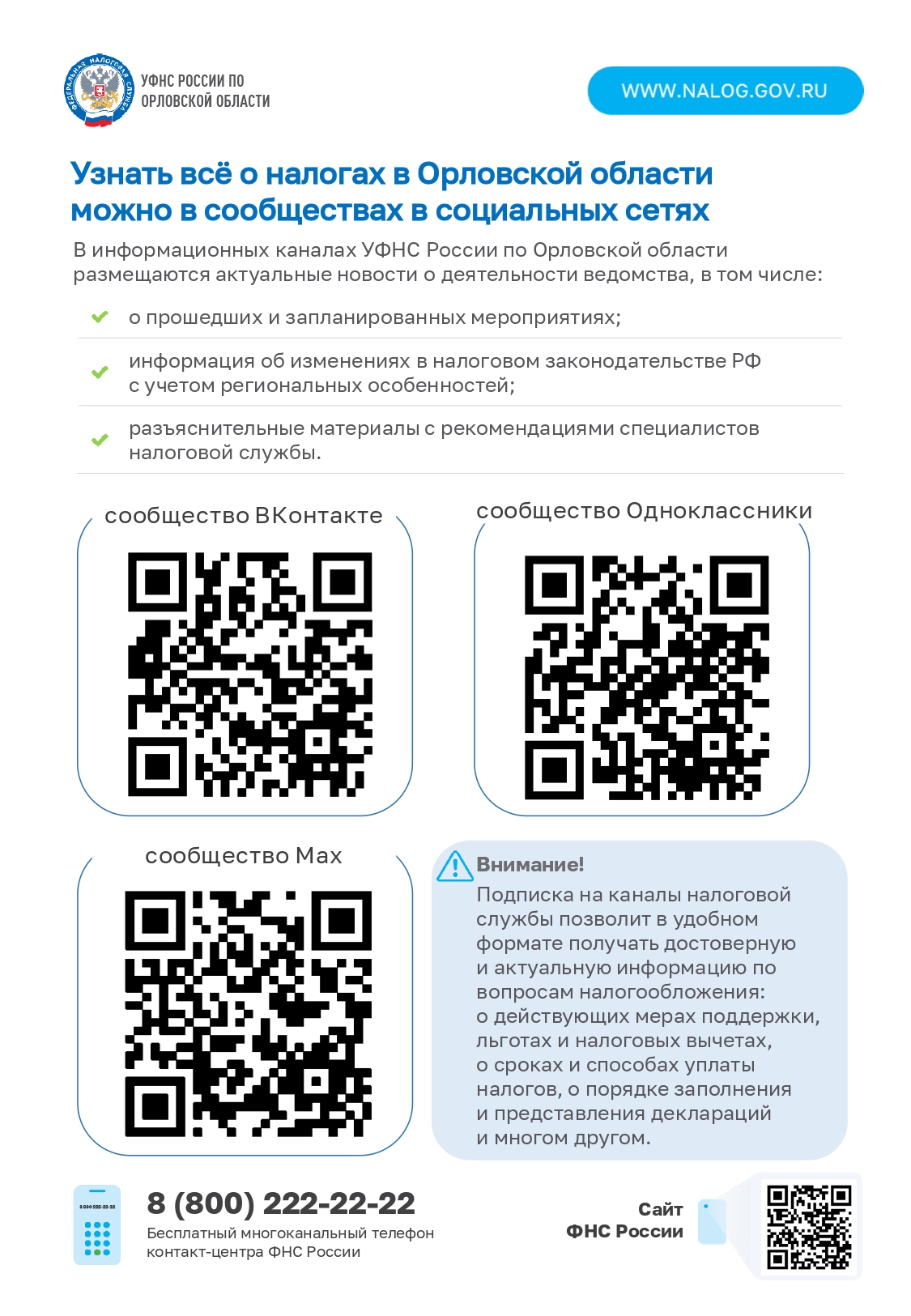 Новостные каналы налоговой службы Орловской области
